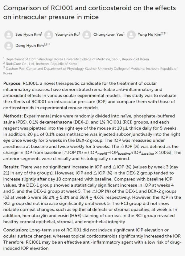 Comparison of RCI001 and corticosteroid on the effects on intraocular … 2026-01-22 0 53 01.22 14:03 Comparison of RCI001 and corticosteroid on the effects on intraocular pressure in mice