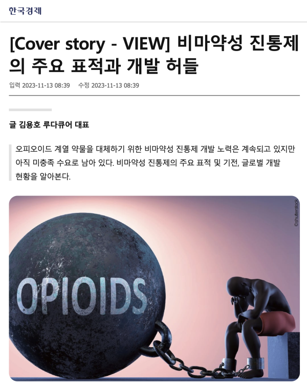 [Cover story - VIEW] 비마약성 진통제 의 주요 표적과 개발 허들 2026-01-22 0 49 01.22 14:08 [Cover story - VIEW] 비마약성 진통제 의 주요 표적과 개발 허들