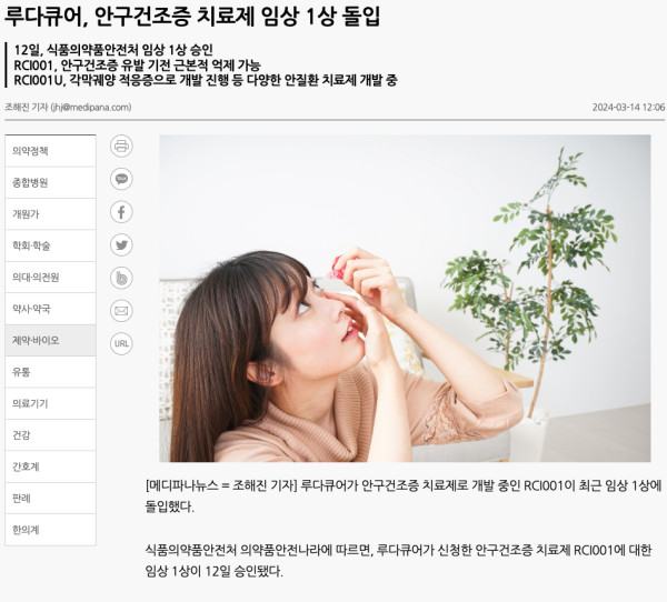 루다큐어, 안구건조증 치료제 임상 1상 돌입