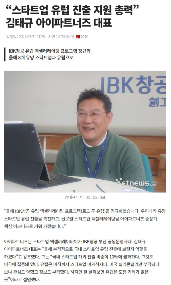 IBK창공 유럽 액셀러레이팅 프로그램 정규화 올해 8개 유망 스타트업과 유럽으로 2026-01-22 0 43 01.22 14:13 IBK창공 유럽 액셀러레이팅 프로그램 정규화 올해 8개 유망 스타트업과 유럽으로