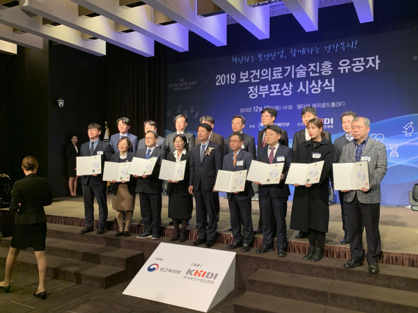 루다큐어 한인보 전무 복지부장관 표창 2026-01-22 0 40 01.22 11:19 루다큐어 한인보 전무가 지난 10일 서울 엘타워에서 열린 ‘2019년 보건의료기술진흥 유공자 정부포상 시상식’에서 보건복지부 장관상을 수상했다. 한인보 전무는 난치성 척추질환 재생 치료법 개발에 기여한 공로 등을 인정받아 우수연구자상을 수상했다. 보건의료기술진행 유공자 시상은 보건복지부와 한국보건산업진흥원이 주관하는 상으로 국내 보건의료 연구개발에 뚜렷한 공적을 세운 탁월한 연구자에 대해 시상하는 상이다.
